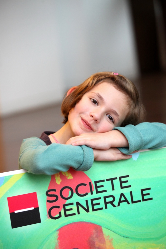 Nous nous rendons à l'accueil des deux grandes tours de la Société Générale! C'est Waaaaaaaoouuuuuhhhh! On nous donne des badges visiteurs, et on nous accompagne jusque la salle où Stella-Rose se verra remettre son prix! Là nous attend une grande PLV avec son dessin imprimé dessus!