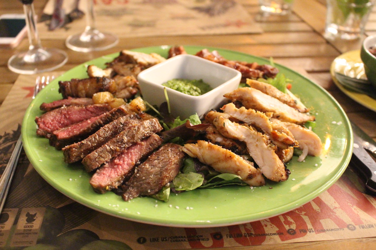 Chéri a pour sa part choisi le plat Parilla mixta con ensalada : des morceaux grillées à la grille de steak britannique marinés, de la poitrine de poulet libre et du chorizo organique avec de la salade saisonnière et des tomates fraîches et de la sauce salsa !
