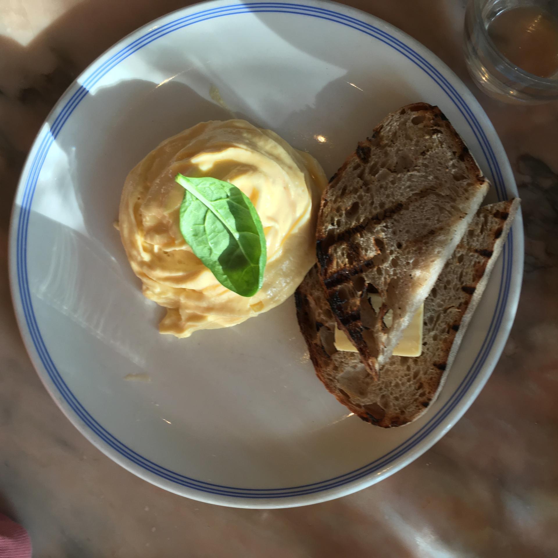 Elijah s'est régalée d'oeufs brouillés et de toast !