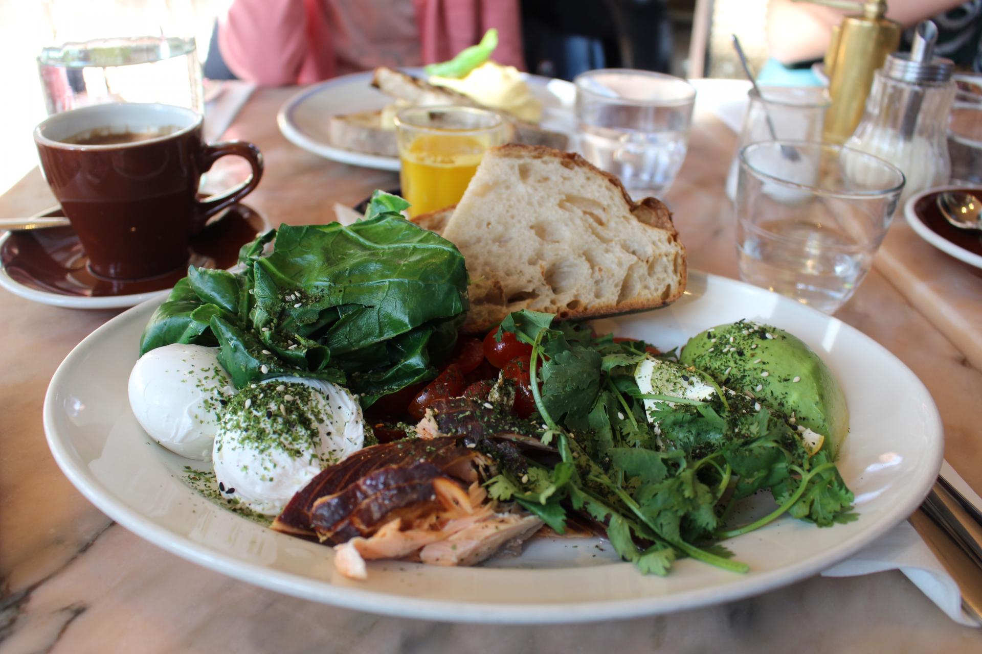 Cette lumière ! C'est la première chose qui me vient à l'esprit lorsque nous rentrons chez Granger & Co, certes le soleil est au rendez-vous mais le restaurant est noyé par cette clarté qui met forcément de bonne humeur de bon matin !