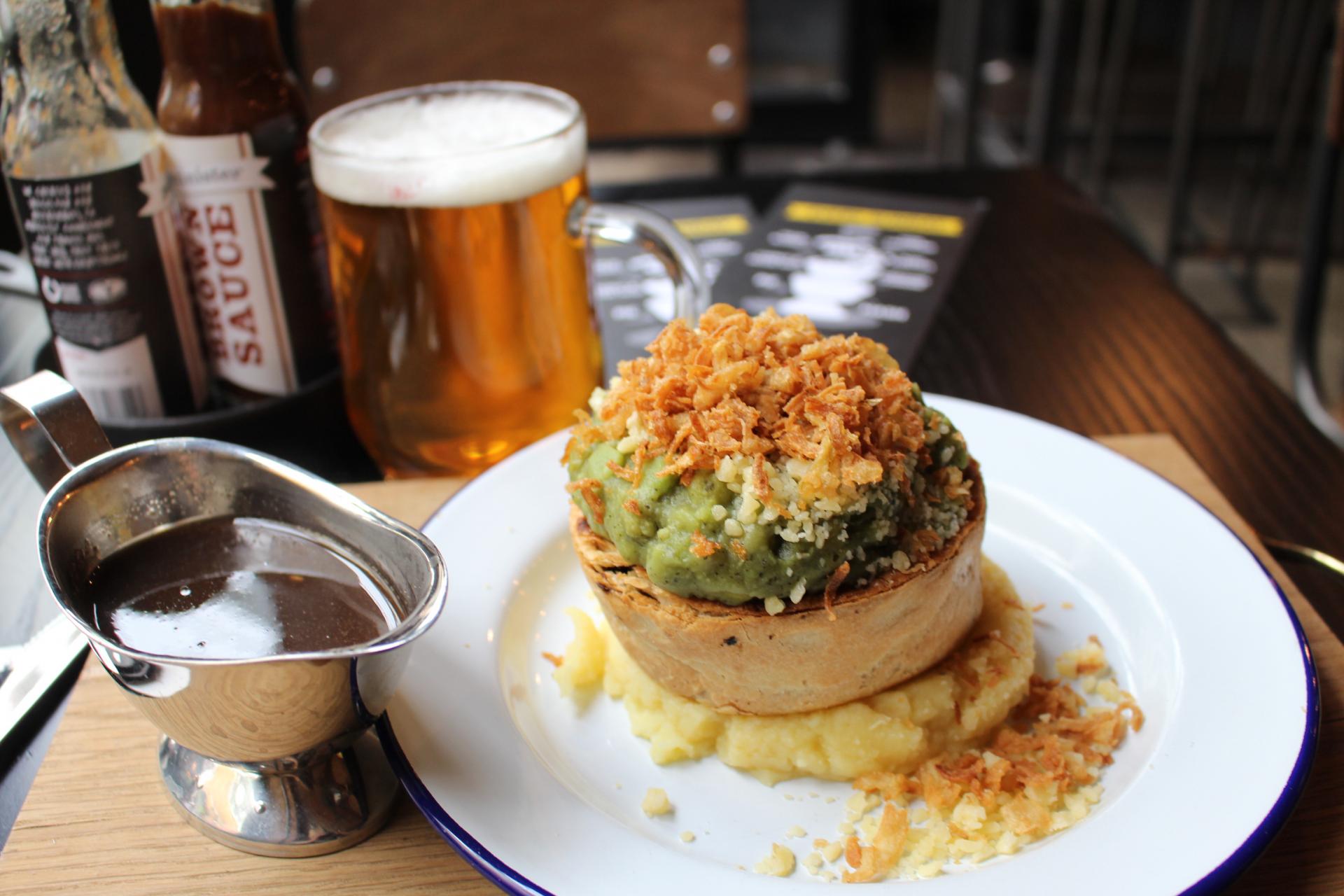 Tout d' abord, vous choisissez parmi une gamme de tartes nommées avec humour. Les noms sont assez explicites , mais le menu fournit des informations sur chacune. Par exemple , le « Moo » est composée de steak de boeuf britannique et l' artisanat tourte à la bière. Puis il y a le deerstalker - venaison britannique sauvage, lard, vin rouge et tarte aux lentilles vertes, sans oublier Kate et Sidney.
