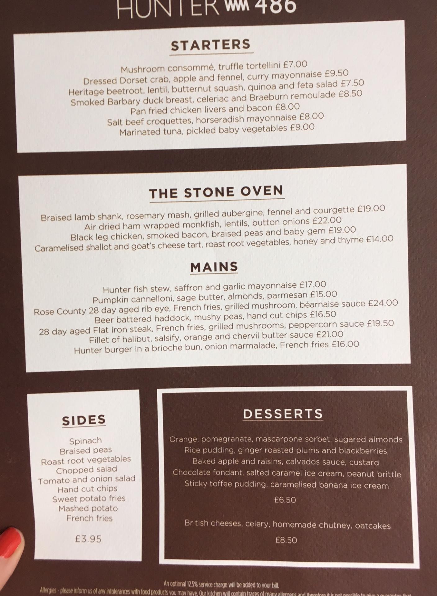 Le restaurant Hunter 486 est un restaurant très calme et décontracte. Dans l'ensemble, la nourriture était bonne et les prix sont assez raisonnables étant donné son emplacement dans un hôtel de luxe dans un quartier chic de Londres. Sans les boissons vous pouvez avoir un repas complet pour environ £ 40. Le service est impeccable et notre serveur a été aux petits soins pour nous. Vous pouvez aussi tenter l'experience de l'afternoon tea Royal en famille comme nous ( on vous en parle par ICI ).