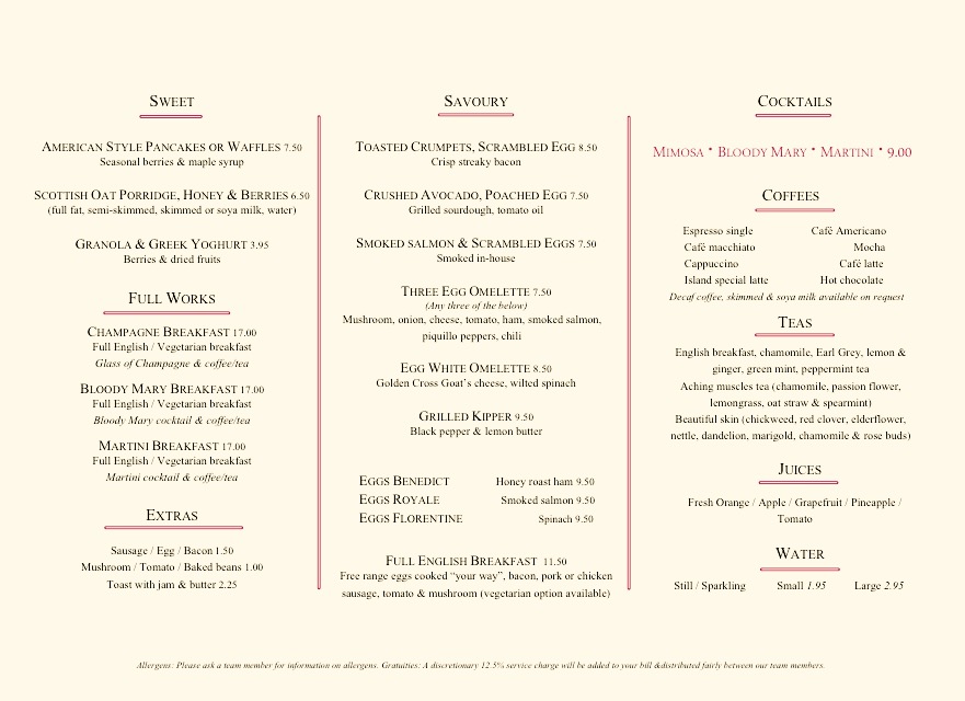 Réservations au 020 7551 6070 ou visitez www.islandrestaurant.co.uk