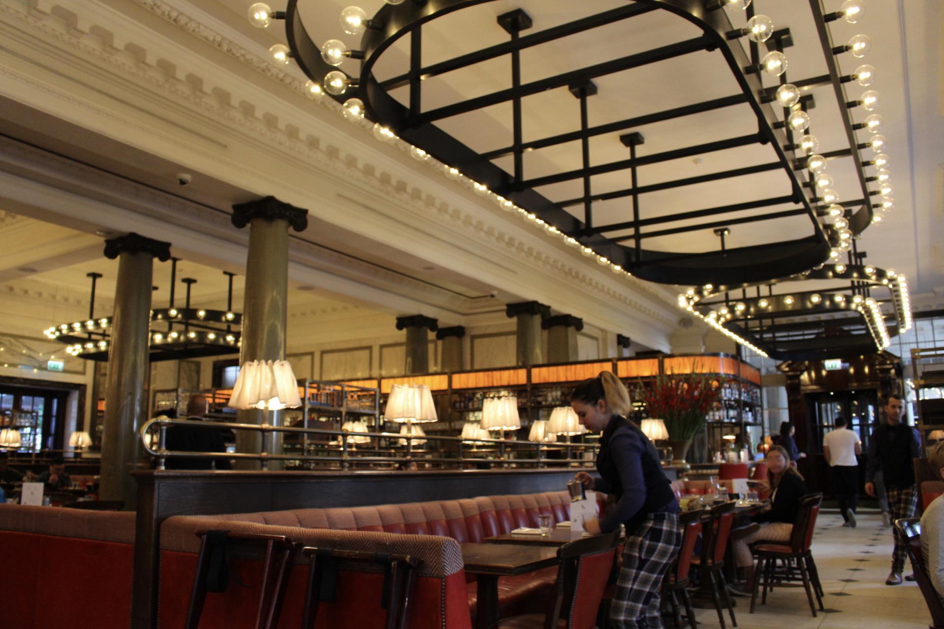 Ce qui marque tout de suite lorsqu'on arrive dans le restaurant c'est la décoration, on fait un saut dans le style brasserie parisienne, à moins que l'on soit à New York ! Le design est donc plutôt, puisque e'est celui de Martin Brudnizki. La déco reflète le style britannique traditionnel de la cuisine. Avec des lustres impressionnants, des meubles en chêne, des miroirs anciens et sellerie cuir, le restaurant offre une atmosphère détendue, associée à la sophistication et le glamour.