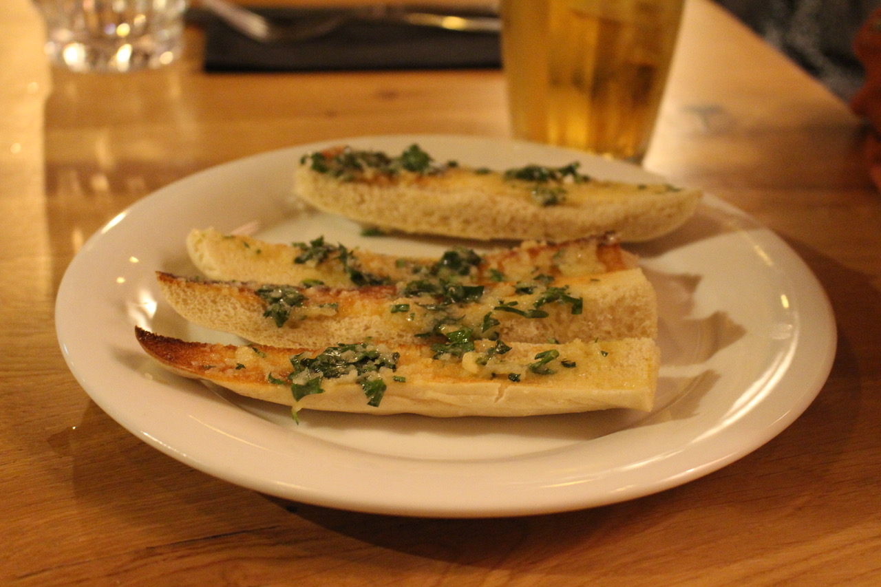 Elijah a choisi en entrée le pain à l'ail, une délicieuse mise en bouche. Elle a ensuite enchainé sur le fish and chips qui était juste parfait !