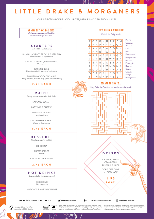 Pour une première dans un restaurant Drake & Morgan c'est plutôt réussi. Les plats servis sont de qualité et copieux, et il y en a pour tous les goûts et surtout ils sont Kids Friendly ! Il y a même une table pour les enfants avec des crayons, des coloriages et même de la patte à modeler !