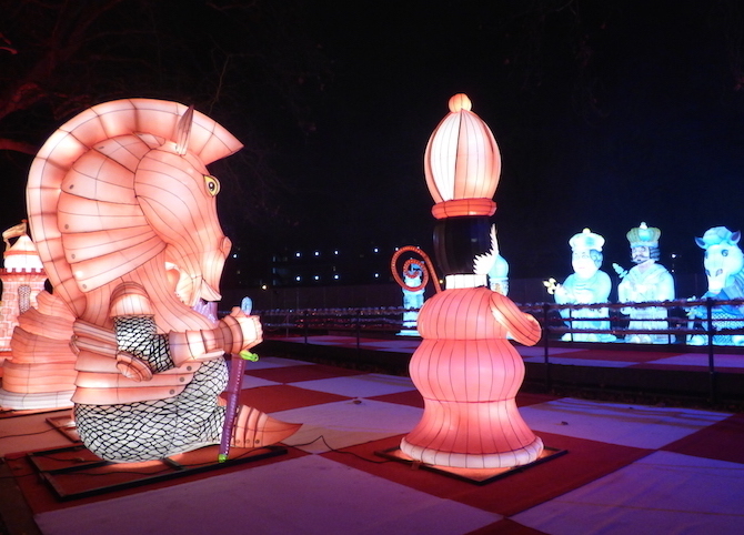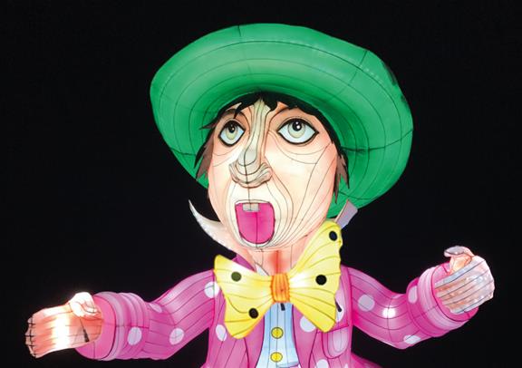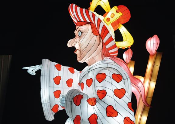 À la nuit tombée, le parc est illuminé avec des lumières merveilleuses des célèbres personnages de Lewis Carrol !
