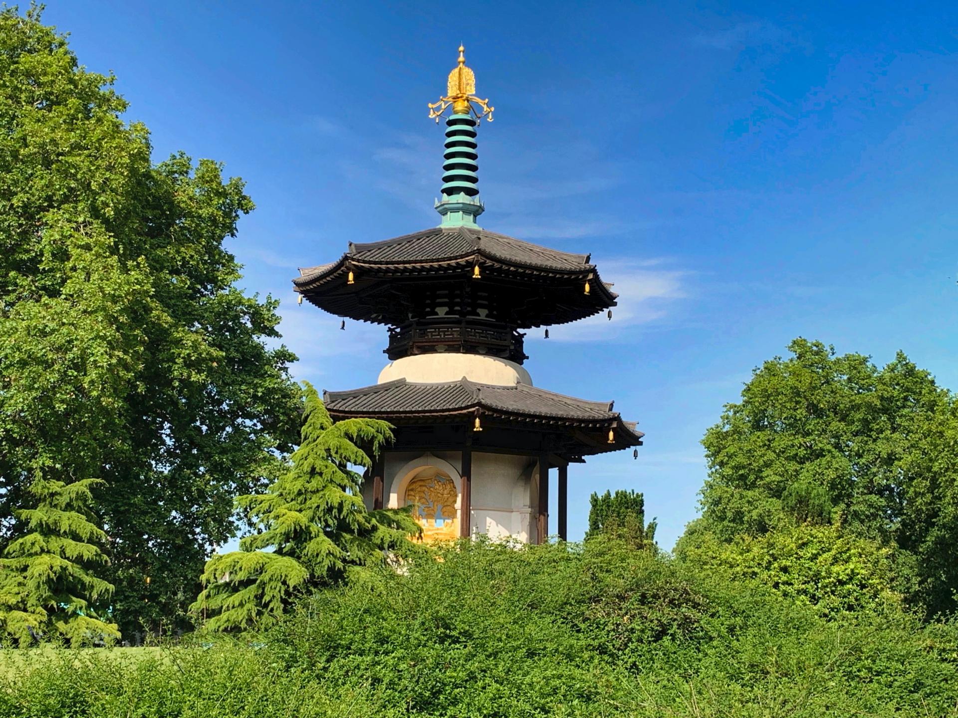 La pagode de la paix est magnifique. Elle a été offerte à Londres par le vénérable Nichidatsu Fuji en 1984 dans le cadre d'une promesse de construire des pagodes comme sanctuaires de la paix. Les statues de la pagode sont en bronze doré pour représenter les états de la vie de Bouddha (contemplation, illumination, enseignement et mort). La pagode de la paix est sur une plate-forme surélevée qui surplombe la Tamise en face de Chelsea.