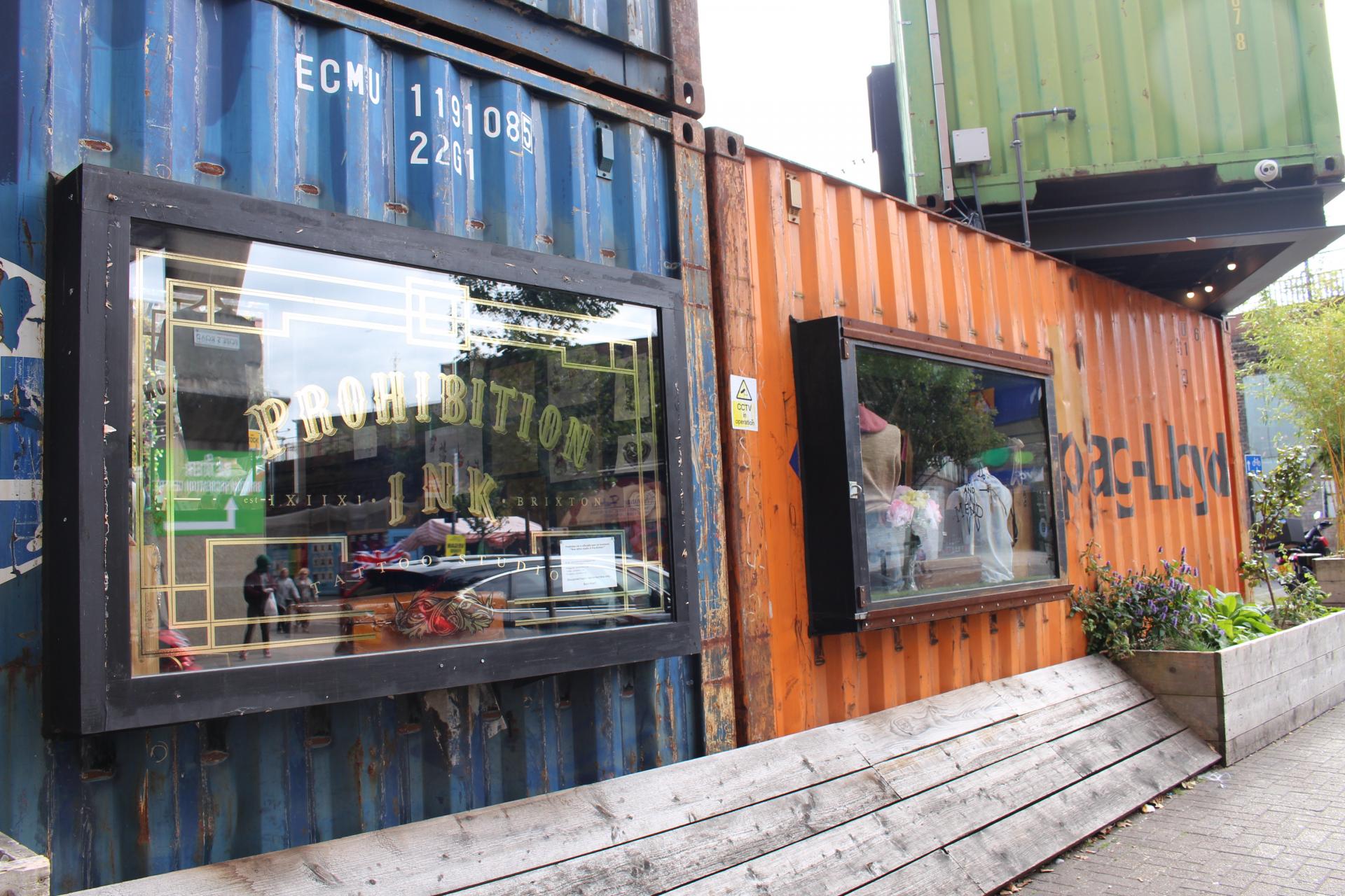 Je suis passée rapidement par le Pop Brixton, village modulable de conteneurs recyclés et apparemment incubateurs de tendance, bien entendu repère « Hype » depuis 2014.
