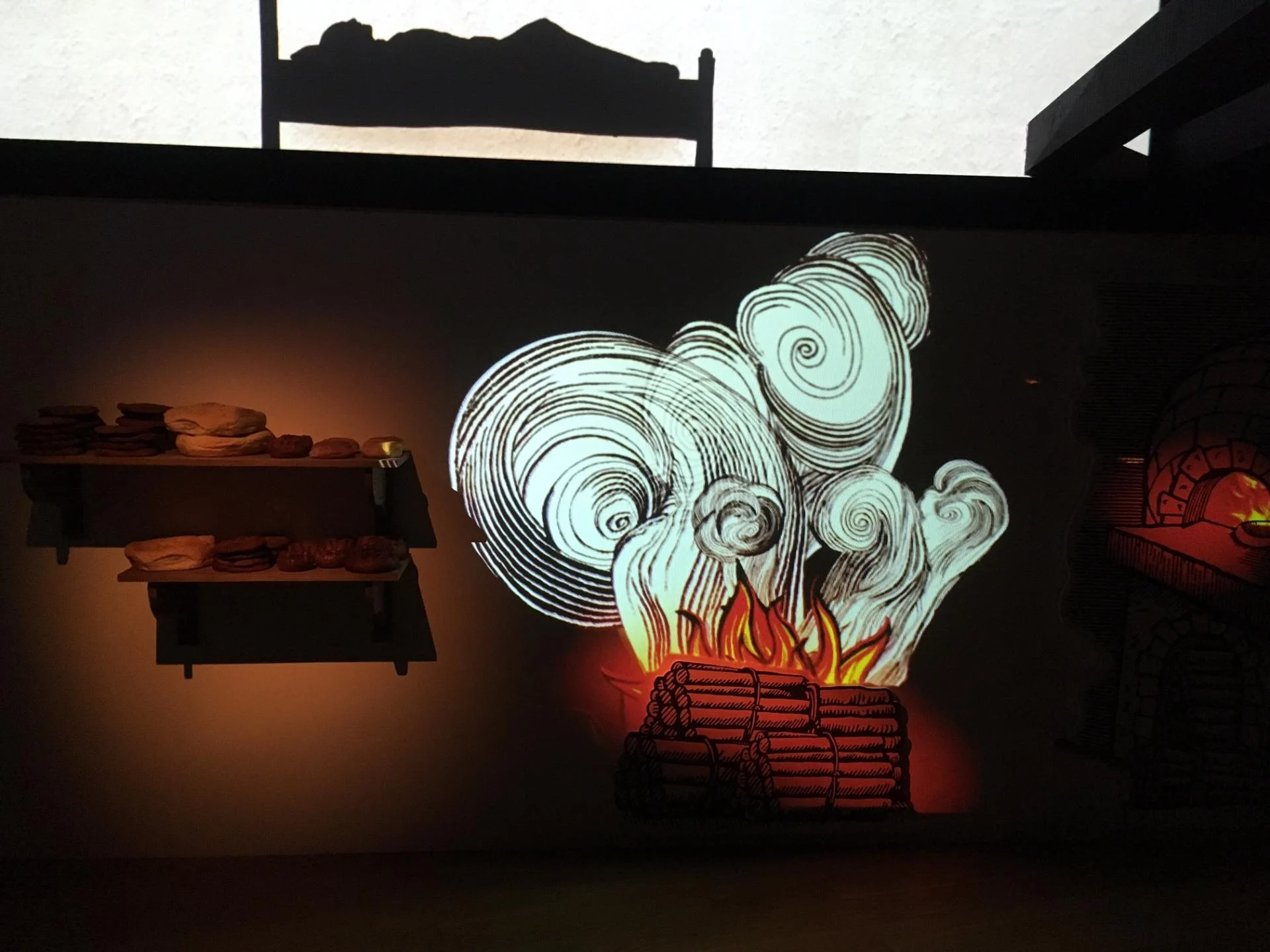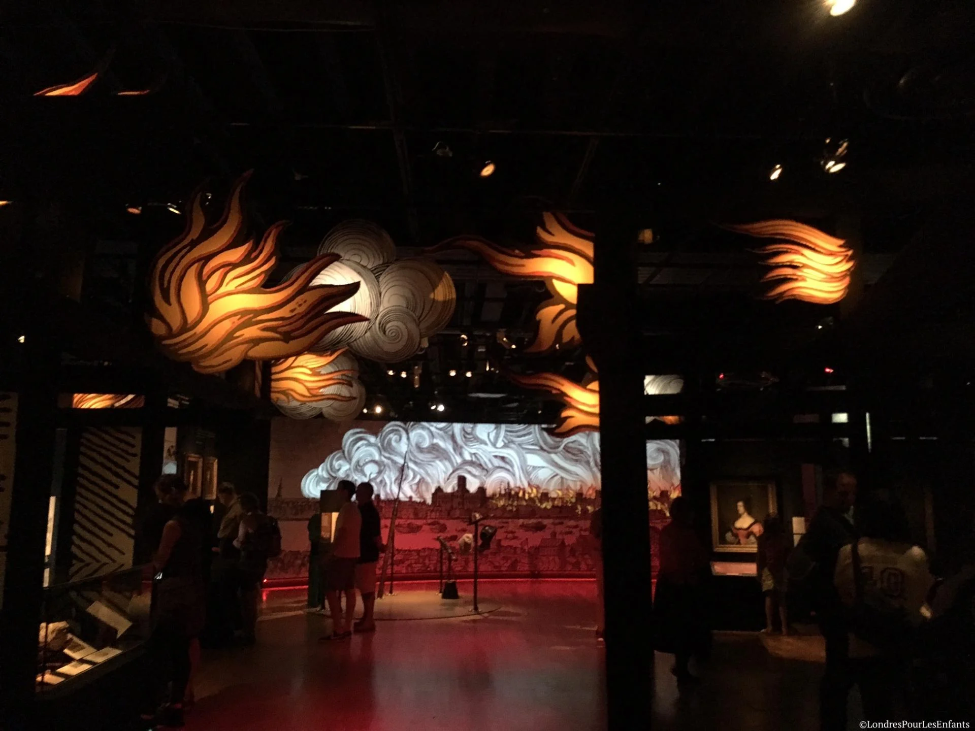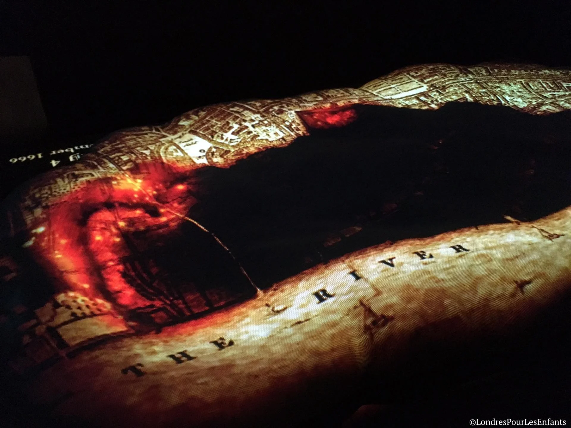On découvre la boulangerie de Thomas Farriner, les visiteurs assistent alors à la progression rapide du grand incendie qui se propage à travers un plan de Londres de 1666 projetée sur un pain géant de pain.