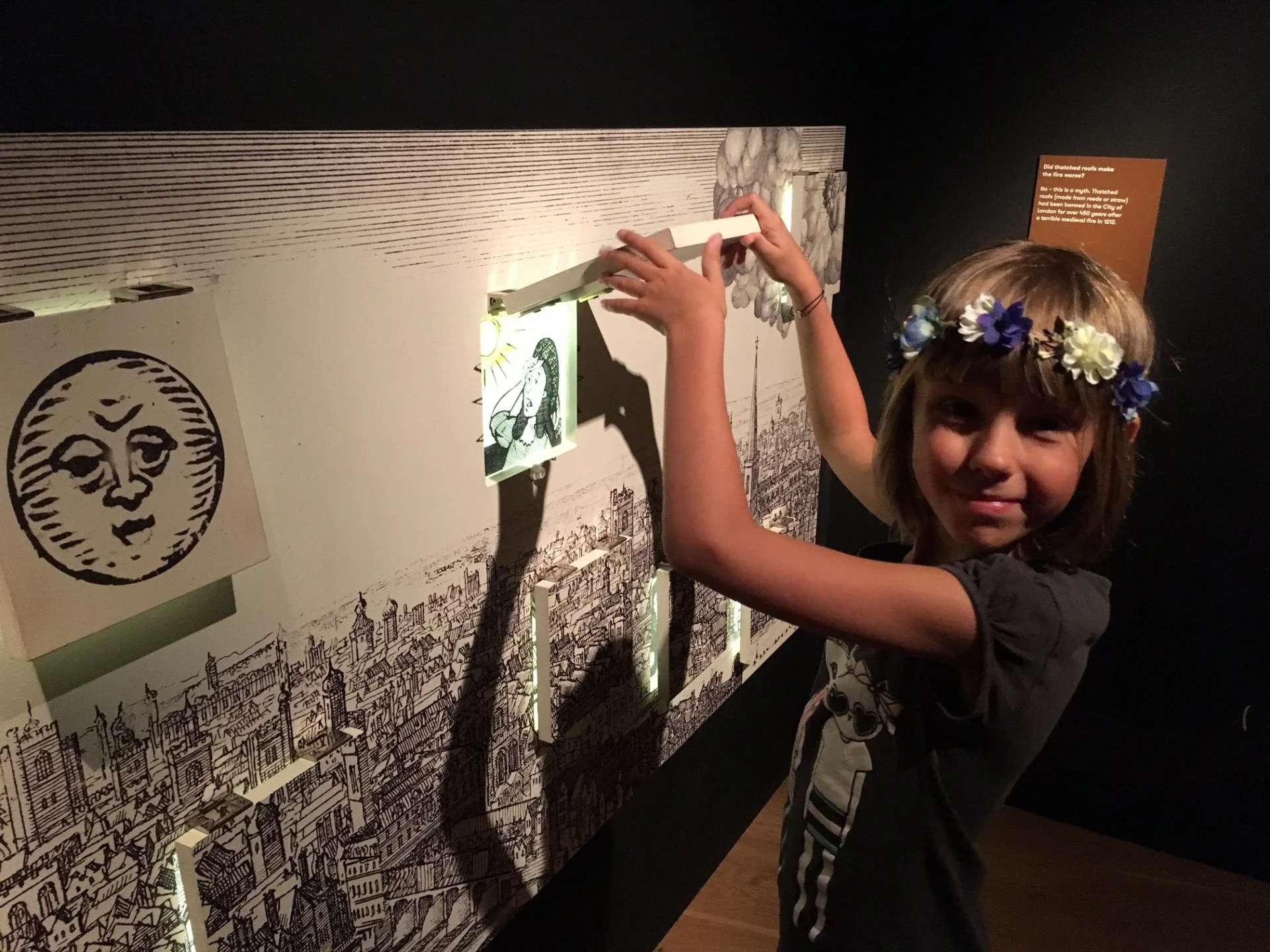 A côté des plans de reconstruction de Sir Christopher Wren et de John Evelyn, on invite les visiteurs à reconstruire Londres avec des blocs en bois dont certains représentent des bâtiments emblématiques!