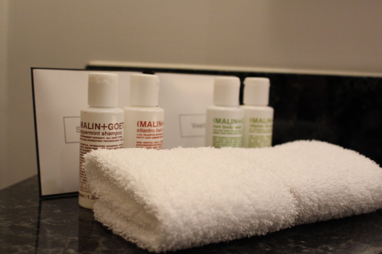 - Dans la salle de bain, des produits Malin+Goetz, un sèche-cheveux, oreiller de bain (pour « siester » dans son bain devant la télévision !)