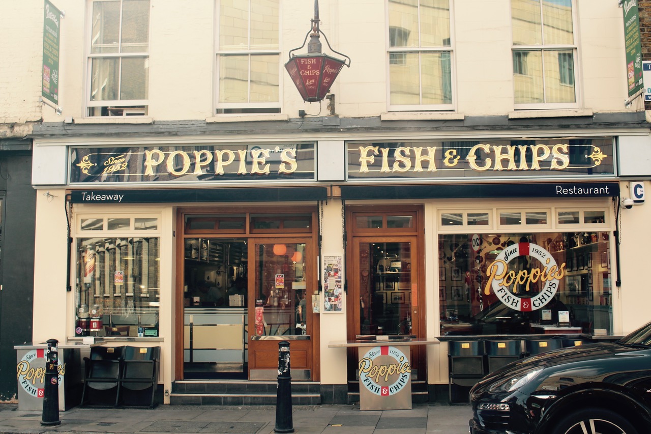 C’est sans doute l’adresse la plus populaire où manger un savoureux fish and chips ! Poppies sert de délicieux poissons et frites au milieu d’un espace lumineux et rétro-stylé où vous trouverez un juke-box des années 1950, des étagères remplies de souvenirs et même les serveuses sont de styles rétro . Chez Poppies, le poisson d'origine locale arrive tous les jours du marché de Billingsgate (flétan, morue, aigrefin…). Tous les poissons peuvent être servis grillés ou frits et sont accompagnés avec de délicieuses frites croustillantes.