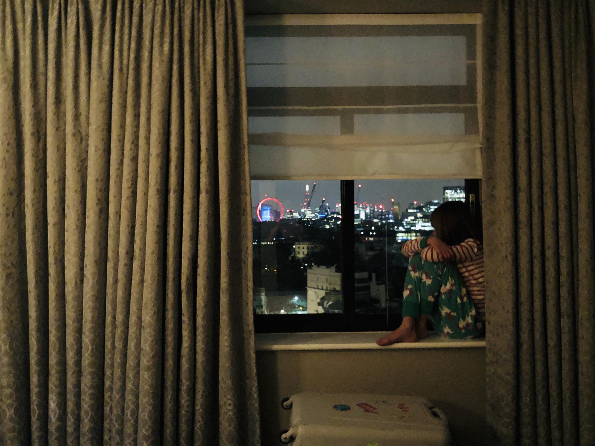 La vue de la chambre est superbe, au loin, la Skyline nous a fait rêver. Si bien qu'en revenant du West End et de la Comédie Musicale Thriller (qui déclenchera par la suite bien des passions), nous avons éteint les lumières et nous sommes restées toutes les deux à admirer la ville et la vue, juste à savourer cet instant.