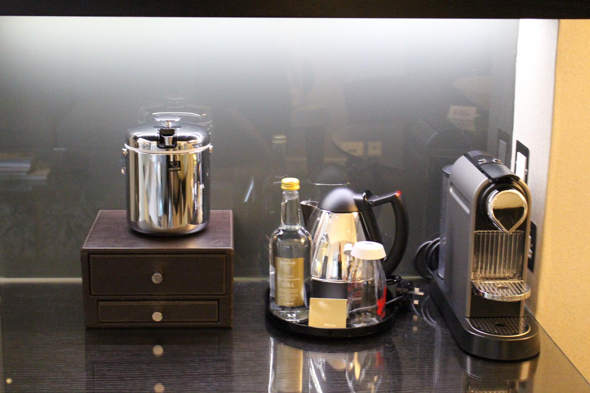 Le séjour est spacieux avec une table haute et d'une table basse, toutes les deux en verre. Un bureau était disposé à côté de la fenêtre mais elle m'invitait plus à rêvasser qu'à travailler. A disposition sur le bureau, une tablette que l'on peut utiliser pour commander divers services, surfer sur Internet et plus encore.
